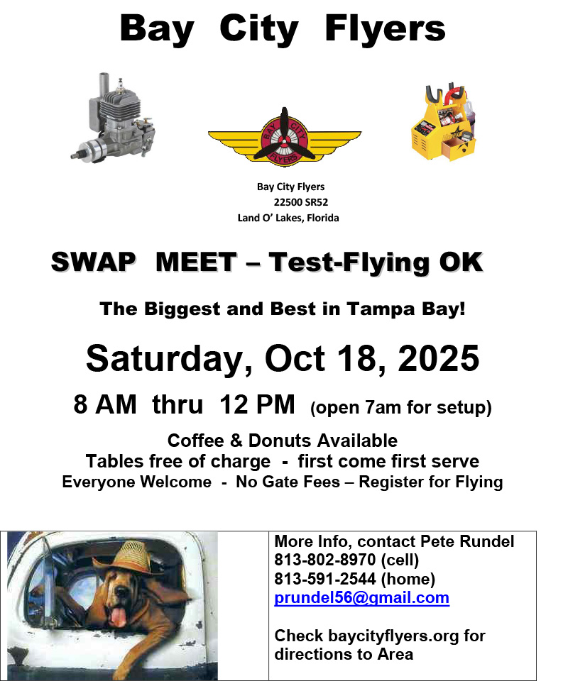 BCF operates the flying field affectionately called Area 52, located approximately 8 miles north of Land O’Lakes, in the Tampa Bay area. See the “Our Flying Site” tab for more information about the field and don’t miss the panoramic photos of Area 52.